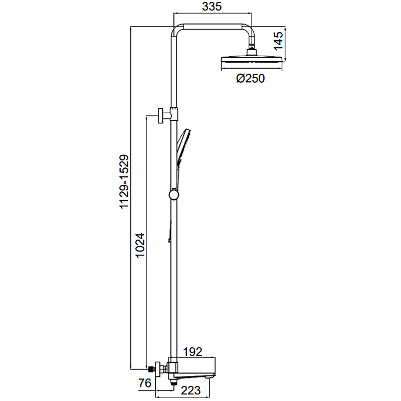 | Вылет верхнего душа, см | 33.5 |