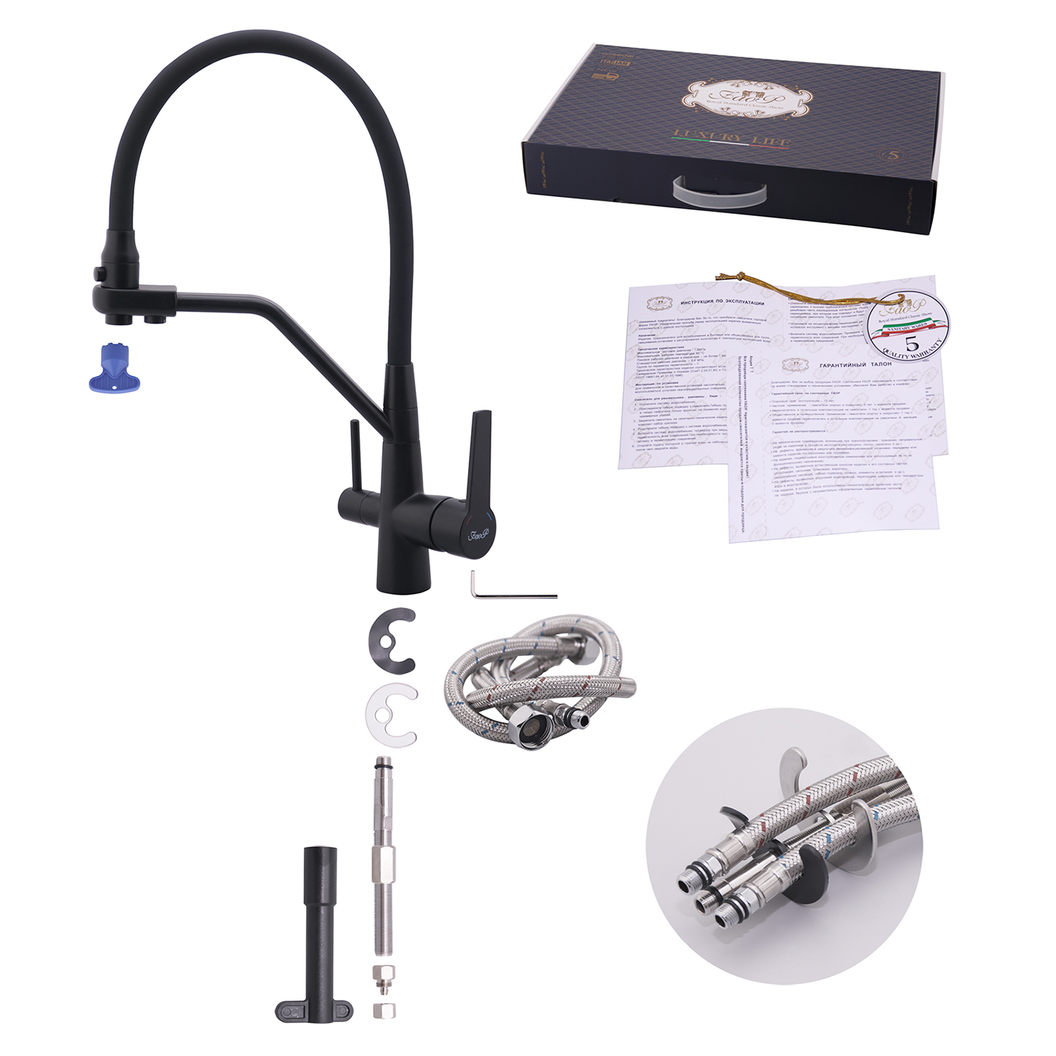 Комплектация товара Смеситель для кухни с гибким изливом FAOP A4397-7 зависит от конкретной поставки и может меняться поставщиком без предварительного уведомления!