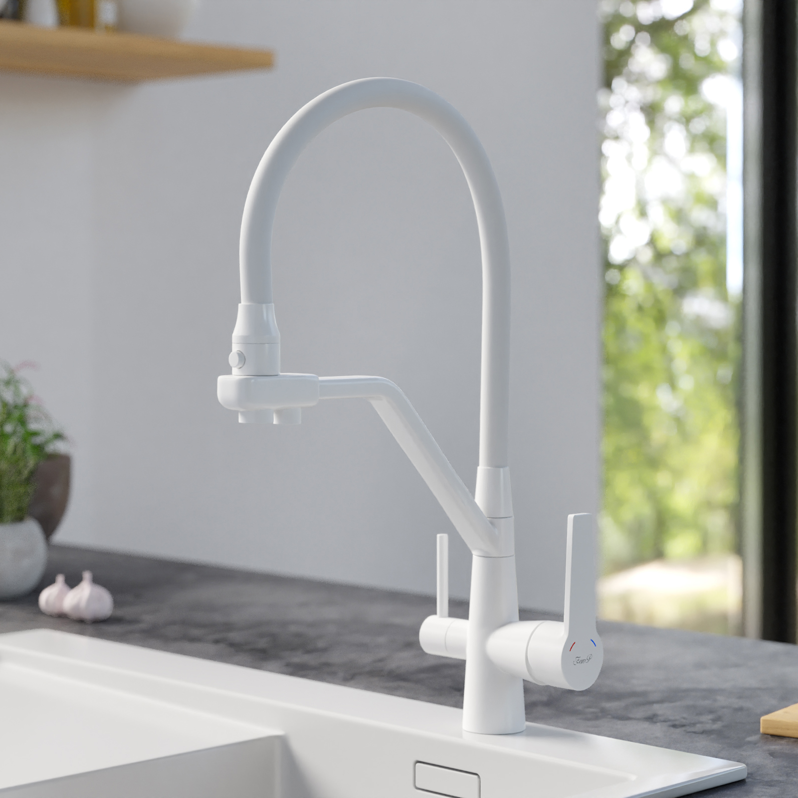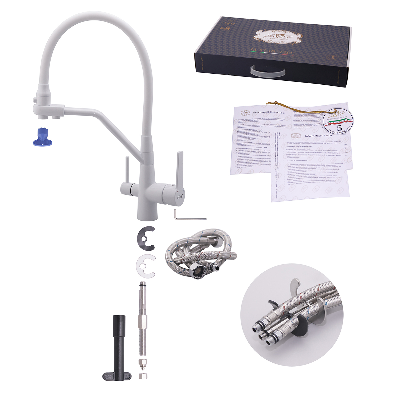 Комплектация товара Смеситель для кухни с гибким изливом FAOP A4397-8 зависит от конкретной поставки и может меняться поставщиком без предварительного уведомления!